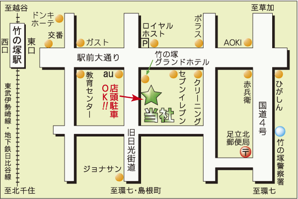 〒121-0813 東京都足立区竹の塚3-16-6 コーポ白鳥1F