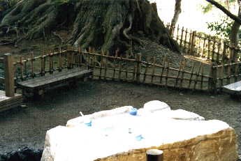 |  | 斜面を下りたところに、泉が湧いています。「吐玉泉」と言い、江戸時代から今日に至るまで水は枯れたことがないと言います。茶道の先生が愛用するほどの名水です。泉のそばには推定樹齢750年の「太郎杉」があります。 そのまま南斜面に沿って進むと、正岡子規の「崖急に梅ことごとく斜めなり」の句碑があります。また、江戸時代に徳川慶喜の父斉昭が選定した「水戸八景」の一つ「遷湖暮雪」の碑があります。ここは、約200年を経た現在でも、千波湖を見下ろす見晴らしが良い場所です。 |