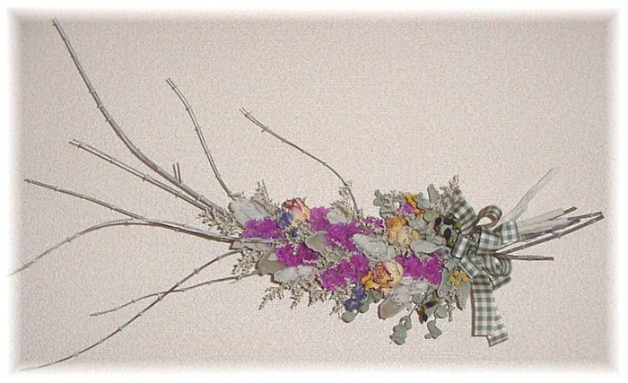 エリンジウムとカスミソウ 50cm×17cm 材料 エリンジムム・・・江別市野幌 カスミソウ・・・ご近所からのいただき物 オオウバユリ・・・千歳 ルリダマアザミ・・・自家製 |