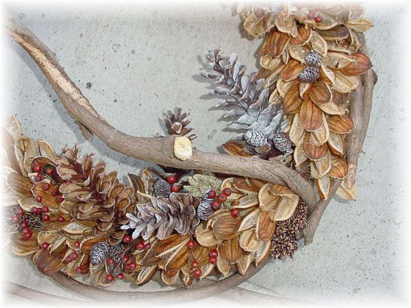 太い蔓(フジ蔓)を使いちょっとあっさりめのリースです。