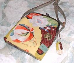 | 小物入れ 姉からオーダーされた小さなバック。 着物を着たとき両手が空くように肩から下げるそうです。 ハンカチ・ティッシュ・財布を入れるみたい。 内ポケット付き。 着地が柔らかいので接着芯を使用こしを持たせた。 紐は長さを調整できるようにした。 16p×16p |