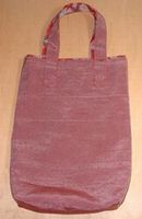| 絽(夏物として使われた織物)を使って作ってみました。 透けていますが丈夫そう〜 下部の着地(古布ではないと思う)には接着芯を貼っていて硬め 上部は絽一枚なのでやわらか。 持ち手は皮の赤いベルトを利用。 33×35 |