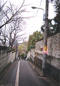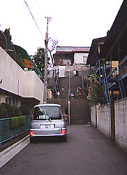 写真3:階段のある道路♪ 階段中央で工作をしている親子がいました^^ |