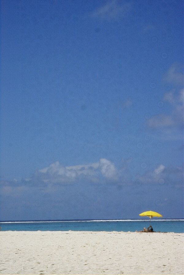 | 空と砂浜のあいだで マニャガハ島写真その2。本当は直径1kmにも満たない島に200人くらいは人がいるようなところです。 ふと目を向けたら人が居ない一角があったので、写真にとってみました。 |