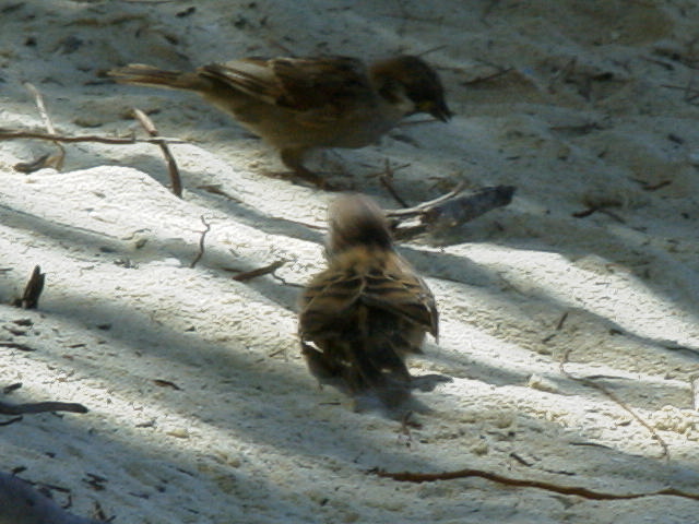 | スズメの砂浴び サイパンの離れ小島『マニャガハ島』で撮った写真その1。サイパンにはスズメがいるんですね。しりませんでした。 写真は砂浜で砂浴びをするスズメを撮ったもです。本当は20羽くらいいたのですが、写したのはこれだけです。ちょっとぶれていますね・・・ |