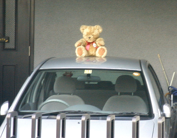 | お気に入りの場所? 2002/09/11 前からちょっと気になっていた近所のクマです。いつもこの位置にいます。今日も今日とてクマは定位置にいました。 |