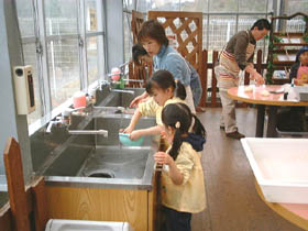 その間に軽くお片づけをして、 時間がくるまで各自自由行動。 その間に地ビールを飲んだり、セロリジュース飲んだり。 あ、そうそう。このあたりからポツポツと雨が・・・ |