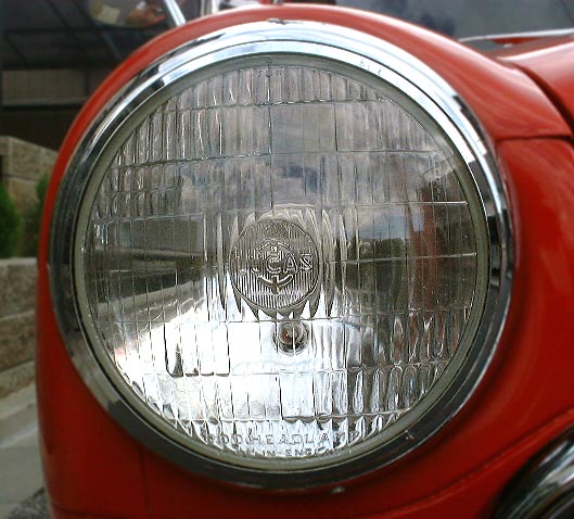 LUCAS製ヘッドライト。初期型だと思う。意外と明るい。