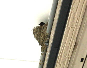 | 【 すくすく育ってます ♪ 】 ショップの軒先でツバメが巣を作り、 4個の卵を産んでいましたが 無事孵化して かわいいヒナが4羽 顔を覗かせていました。 親ツバメは一生懸命ヒナのために 何度も何度もエサを運んでいました。 親って・・・すごいですね〜 |