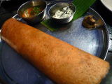 プレーンはサダ・ドーサ,それを強火でカリカリになるまで焼いたものをペーパー・ドーサ。普通に焼いて三角形か,三角垂に畳んだものが,ダイヤモンド・ドーサ。