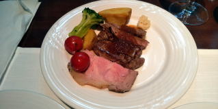 三元豚の塩釜焼き,ビーフステーキ,グリルトマト,ブロッコリー,フライドポテト,カリフラワー