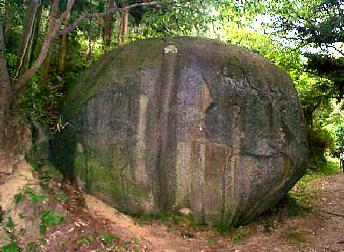 | 大和郡山の矢田寺と言うお寺の近くの坂を登っていった所にそれはそれは大きな石があるのじゃが、このとっても大きな石には、なんと馬の足形が1つついている。 | |
