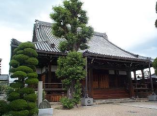 | ある日のこと、このお寺にお坊様が入られる事になったそうな。 噂話は聞いておられたので、そんな悪さをするのは狸に違いないと夫婦狸を捜されて、同じ化けるなら人の為になることをと諭されたそうじゃ。夫婦狸が言うには、ただ寂しくて、人間に相手して欲しかったそうな。 それからもお寺の東側の道を夜通ると、チンチンコンコン、と鉦(かね)の音がするけれどそれは夫婦狸が真面目にお勤めしているときで、また、お寺の西側の道に袋真綿が落ちているのは夫婦狸が村人に施しがしたい時なんじゃと。 こうして夫婦狸の奉公のおかげでお坊様はたいそうお寺を立派にされたそうな。 いまでも今井町には、このお寺があるのじゃ。(写真は光慶寺です) | |