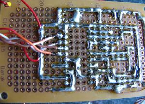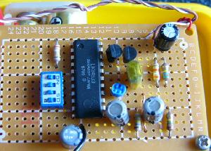 | 私は右の写真のようにユニバーサル基板に組んでみました。ユニバーサル基板の欠点は回路を作るときに部品の足を使って回路をこしらえたり斜め配線がしにくかったり回路基板がどうしても大きくなる事ですが手軽なため良く利用しています。 曲目です。音がでますよ(^^) 1 エリーゼのために 2 ローレライ 3 村のかじや 4 愛のロマンス 5 さくらさくら 6 アニーローリー 7 グリーンスリーブス 8 かっこう |