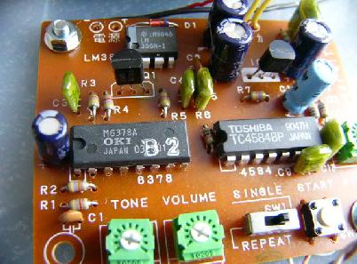 | 電源DC6〜DC12Vまたは006P乾電池(9V) 消費電流:最大60mA 静止時 5mA 出力=8Ωスピーカー 0.5W ワンショット動作、繰り返し動作 基板寸法 63o×50o | |