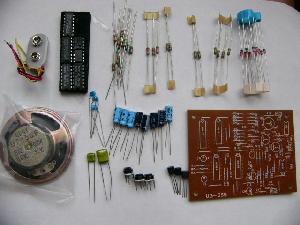 | 電源DC9Vまたは単3乾電池(1.5V×6) 消費電流:最大100mA 静止時 10mA 出力=8Ωスピーカー 0.5W ワンショット動作、繰り返し動作 基板寸法 68o×91o | |