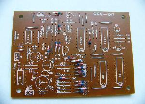 | 次に抵抗とICを取り付けました | 最後にトランジスター等をつけて完成(^^) |