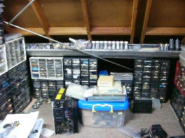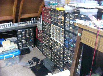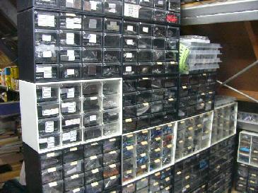 チップ抵抗・VR・半導体(TR・ダイオードほか)手前はトランス