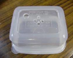 | (1)100円ショップで手に入る容器を用意します。4個100円でした。蓋の部分を下にして使用します | ||