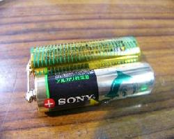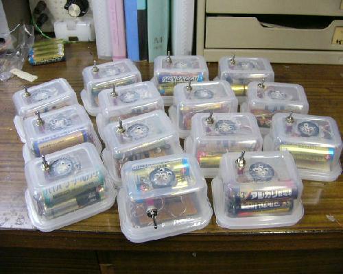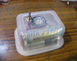 | 電池の高さがちょうどこの容器に収まる高さなので固定しなくてもぐらつきません。コンパクトに収まりました。 | 反対側の写真です。こんな感じです。もっと小型に出来るのですがこれくらいなら初心者の方にも楽に製作できると思います。これで完成です。 | UM−66Tシリーズ配線図です。 ご参考まで(^^) |