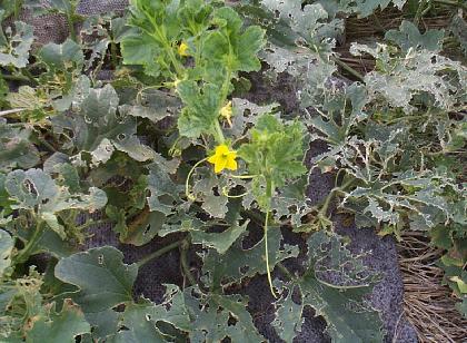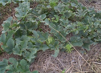 中程では瓜の姿が。猪の子供が瓜坊と呼ばれるのはこの模様からですが
