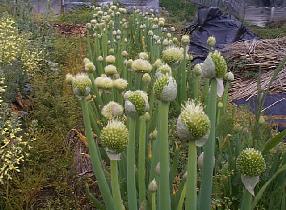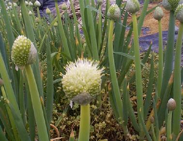 葱の花は筒状の茎の先端に白い花がぼんぼり状に咲きます。