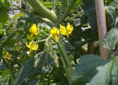 花は小さいです。なすびと、じゃがいもと、とまとは同じ仲間ですからおなじような花が咲くのですよ
