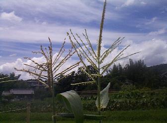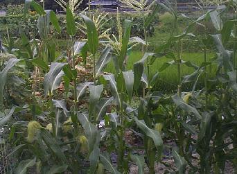 とうもろこしは自家受粉出来ないので たくさん植えます