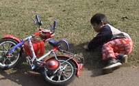 失敗。転んじゃって、すっかり やる気を失う峻。 ちょっとだけ頑張って、 ほんの少しだけ乗れるように なったよ。 |