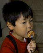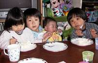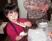 | 2001/10/8 今日は札幌ばあちゃんが 白玉だんごを作ってくれたよ。 峻もお手伝い♪ |