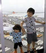 | 今日は、札幌のおじいちゃんとおばあちゃんの 所に行くために、お家から車で大洗港まで行って フェリーに乗ったよ。 待ってる間、山登と遊んでたよ。 |