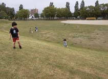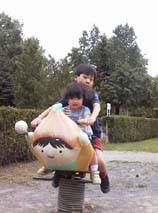 | お母さんが子どもの頃遊んだ「伏古公園」で 遊んだよ。とっても広い公園で、山まであるんだよ。 |