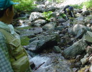巻き下って支流で川虫取り