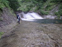 今回いちばん深い釜だがイワナ姿見せず |