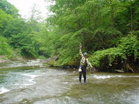 きれいな川をのんびり釣り歩く |