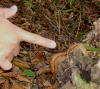 廣田さん、ナメコの群生を見つけるも、小さい。惜しい。 |