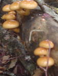 まずおかずのキノコ探し。ブナハリタケが若いのが多く、チャナメツムタケ、ナメコ、ムキタケが少しずつで若い。ナラタケは古い。紅葉と同じくきのこも遅れているようだ。こういうときはゴムタケモドキもありがたくいただく。 |