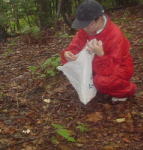 いったん車に戻った後、ラストチャンスでマイタケにトライ。笹薮に突入。 |