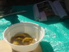 沢できのこを洗い、昼飯タイム。図鑑を見て復習。みそ汁用に煮ているところからヌメリスギタケを取り出してワサビじょうゆあえ。ちと土臭かったがワイルドな味わいとしよう。 |