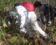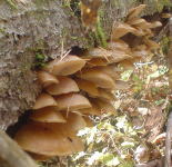 | 今日の日程を説明していると、ムキタケ群生が見える。私がよじ登っていきなり大量ゲット。 |