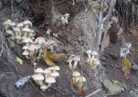 | しばらくきのこがないのが10分ほど。Nさんはさらに突き進み、チャナメのよい群生を発見、みんなでまわりを探す。 |