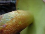 イグチ類は毒キノコが少なく、傘の赤いイグチには毒がない(矢萩図鑑)とも言うが、わからないことも多いので正確に同定したい。![]() ほぼ離生とされるが、直生することもある |