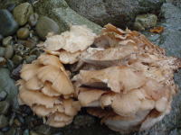 栽培ものでシメジといえば、ブナシメジかヒラタケ。形は違うがこの大理石模様が特徴的で間違えることはない。味も栽培物と同じく、しつこくないうまみ。 シメジというのは地面から出るひだのあるきのこに付けられるが、こいつ(だけ?)は木から生える。 |
