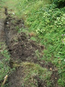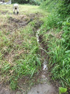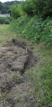 山ぎわの排水路造り