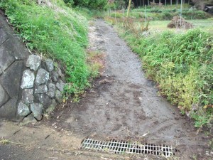 アプローチを少し広げた。 裏のほうの道も泥の塊や草をきれいに。