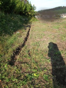 小屋建設予定地決定! 土木工事(=排水路造り)もぼちぼちと進行中。