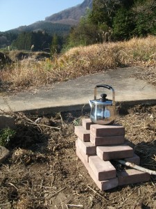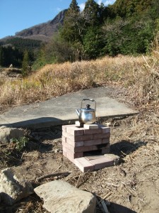 冬の備えとして たき火の上に 台を置いて お湯を沸かそうか・・とも思ったけど