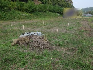 土地を整地したつもり。 Before → After(イノシシに掘り返されたみたいに見える?)