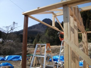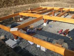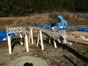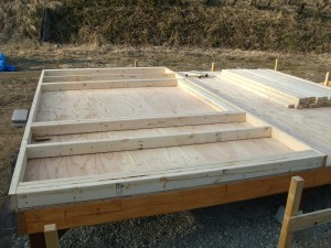 今日は根太が全部入った。 晴れてると、作業が進む、進む!