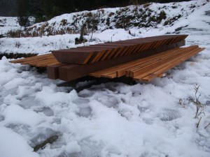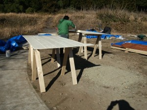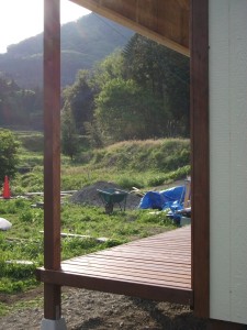 ポーチの床板を釘打ち。 これで,次は 玄関ドアの仕上げにかかれる。